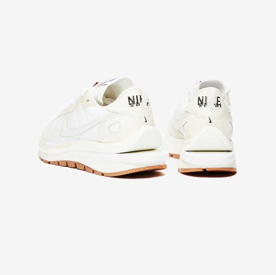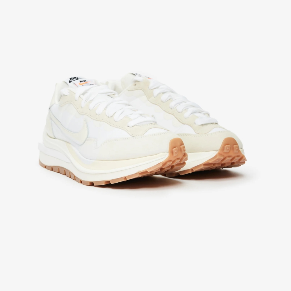 Модель Sacai x Nike VaporWaffle Sail Gum разработана в сотрудничестве с известным модным лейблом Chitose Abe. Белый верх со светло-серыми замшевыми вставками . Пятка отмечена двойным логотипом Nike и Sacai. Частично разделенная мидсоль из пеноматериала усилена культовой вафельной подошвой Nike.- Цвета: Sail/White/White