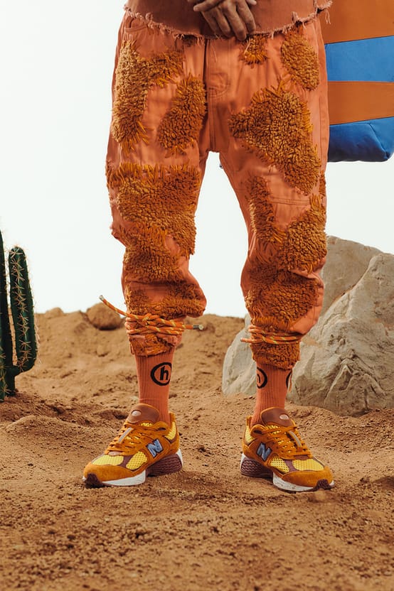 Модель Salehe Bembury x New Balance 2002R «Peace Be the Journey», созданная в сотрудничестве с вице-президентом Versace по кроссовкам и мужской обуви, подчеркивает характерную цветовую схему, вдохновленную ранними утренними походами дизайнера по долине Антилоп в Аризоне. Эта обновленная версия 2010 Performance Runner имеет верх из желтой открытой сетки с оранжевыми замшевыми накладками, акцентами пурпурного цвета и пушистой голубой овчиной на фирменном логотипе «N».- Цвета: Burnt Orange/Yellow