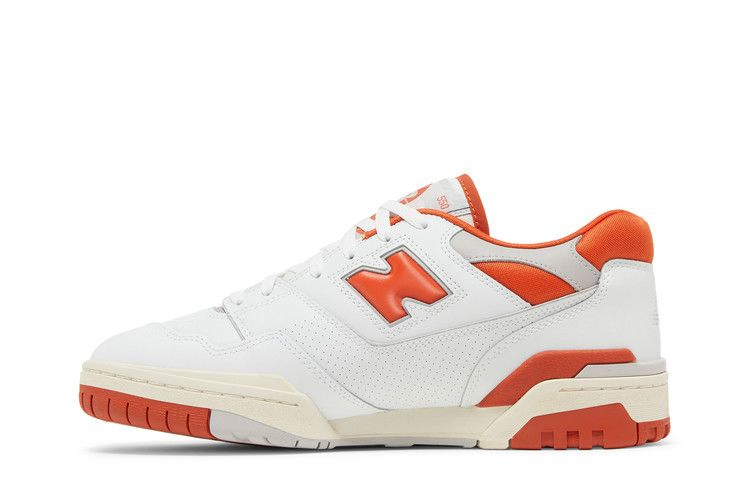 Модель size? x New Balance 550 'College Pack', разработанная в сотрудничестве с британским ритейлером, обновляет ретро-обувь, создавая палитру, вдохновленную варварством. Многослойный верх сочетает в себе белую кожаную основу и мягкий текстильный воротник смелого оранжевого цвета. Осенний оттенок повторяется на тканом язычке, фирменном логотипе "N", TPU-клипсе на пятке и брендинге "550" на боковой накладке передней части стопы. Модель установлена на резиновую подошву с боковыми стенками кремового оттенка, что придает ей винтажный вид.