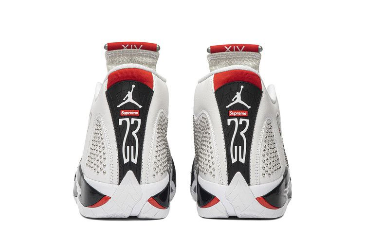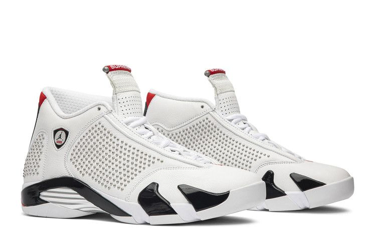 Нью-йоркский лейбл одежды и скейтбордов Supreme летом 2019 года вновь объединился с Jordan Brand, чтобы по-новому взглянуть на модель AJ14. Supreme x Air Jordan 14 Retro SP - это кожаный верх с металлическими шипами, украшающими боковые и пяточную панели. Кроссовки повторяют скоростной облик классической модели 1998 года, а эмблема Jumpman, вдохновленная спортивными автомобилями, дополнена тонким брендингом Supreme и Jordan. Дополнительное обозначение бренда можно найти на пятке, язычке и заднике, что придает кроссовкам неповторимый вид.