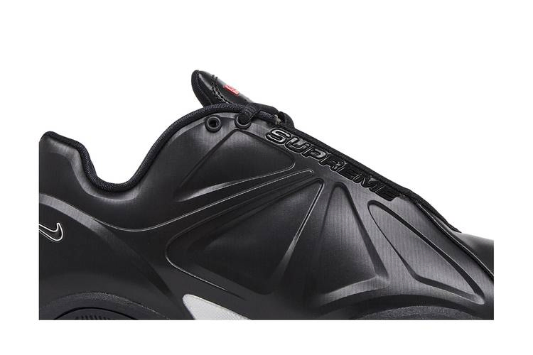 Модель Supreme x Nike Air Zoom Courtposite 'Black', выпущенная в рамках коллекции из трех предметов, возрождает теннисные кроссовки начала 2000-х годов в монохроматическом исполнении. Сплошной черный верх Posite с мягким воротником и резиновой накладкой на носке для большей прочности. На боковой накладке выгравирована надпись "Supreme", а логотип Supreme в красно-белой рамке украшает язычок. Задняя часть пятки украшена вертикальным рядом из пяти точек в знак уважения к инновационному проекту Nike Alpha Project. Низкие кроссовки опираются на прочную резиновую подошву и пластину голенища из TPU с серебристым металлическим покрытием.- Артикул: FB8934-001