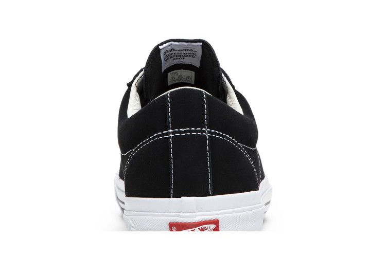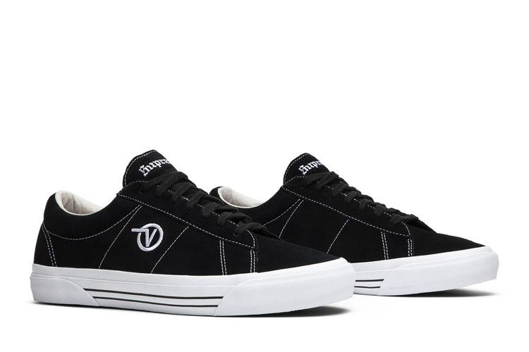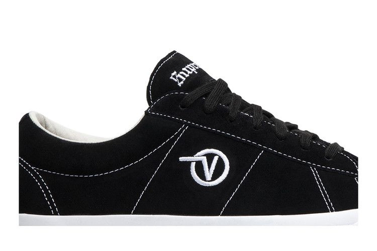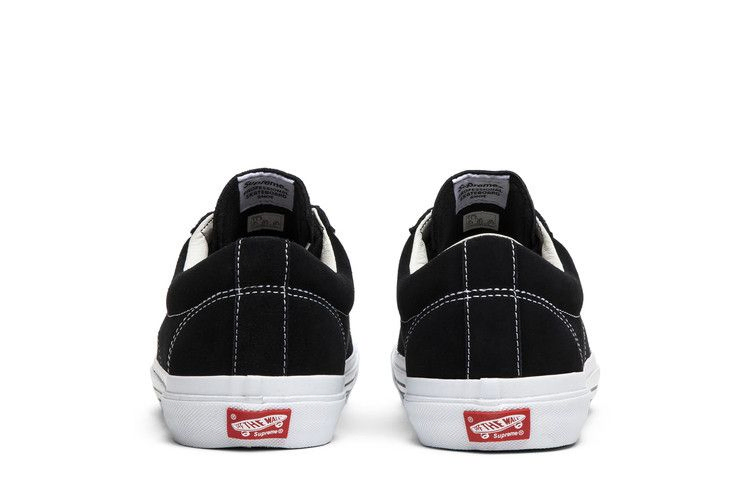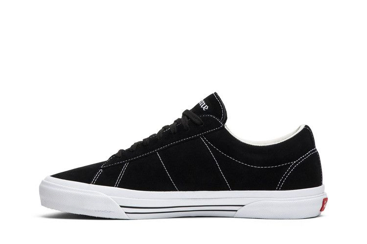 Компания Supreme открывает хранилище скейт-моделей Vans 90-х годов, создавая силуэт Sid Pro с нотками своего собственного скейт-наследия. Низкая модель имеет черный замшевый верх, контрастирующий с толстой белой подошвой, шнурками и ретро-логотипом Vans на задней панели. На язычке также красуется староанглийский фирменный знак Supreme, придающий ностальгическую привлекательность.