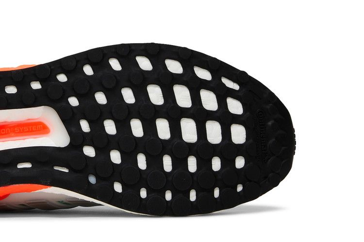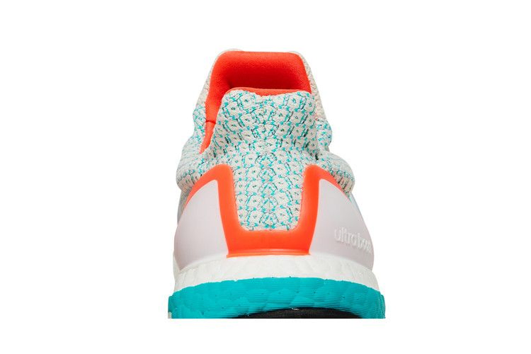 Модель adidas UltraBoost 5.0 DNA "White Mint Rush" сочетает в себе цвета наследия с современным экологичным дизайном. Верхняя часть из дышащего материала Primeknit, изготовленная из 50% пластика Parley Ocean Plastic и 50% переработанного полиэстера, украшена тканым узором в белом и зеленом цвете мела. Серебристые металлические полосы Three-Stripes украшают каркас средней части стопы из TPU, а контрастные оранжевые акценты расположены на внешней стойке пятки и текстильной подкладке воротника. Модель располагается на полноразмерной подошве Boost, поддерживаемой торсионным стержнем adidas и подошвой Continental Rubber.