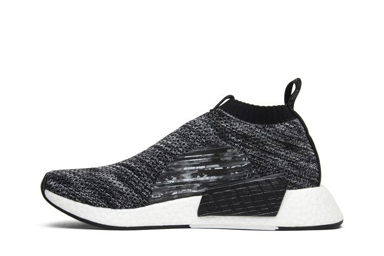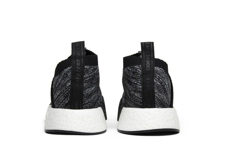 Выпущенные в январе 2018 года, эти NMD_CS2 Primeknit стали результатом сотрудничества adidas Originals и токийского бренда уличной одежды United Arrows & Sons. Кроссовки с низким верхом выполнены из черно-белого Primeknit с утепленным верхом и носком, напоминающим носок. На язычке и медиальном TPU-листе нанесена графика, разработанная японским художником Косуке Кавамурой. Под ногами - белая промежуточная подошва Boost и черная резиновая подошва.