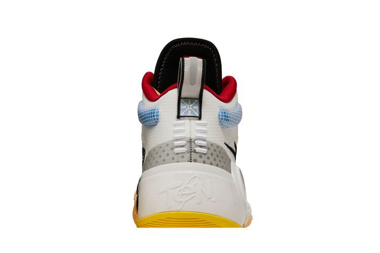 Вдохновленные промышленным дизайном, Way of Wade 10 'Test R1' имеют белый текстильный верх, украшенный графическими элементами, контрастной строчкой и контрастным всплеском цвета. Они включают малиновую текстильную подкладку, ярко-желтый мысок и синие пенные подушечки вокруг воротника. Легкая амортизация обеспечивается за счет промежуточной подошвы Boom от Li-Ning, обтянутой каркасом из TPU и оснащенной пластиной из углеродного волокна по всей длине. Подошва кроссовок выполнена из прочной нескользящей резины нейтрального цвета.