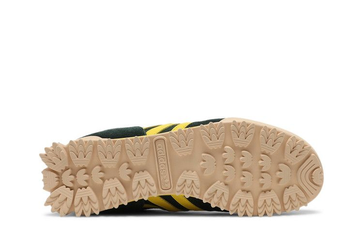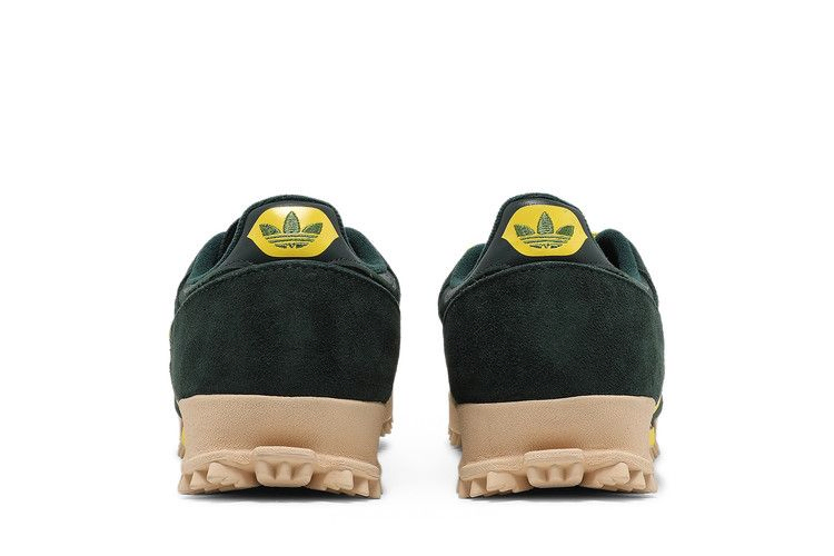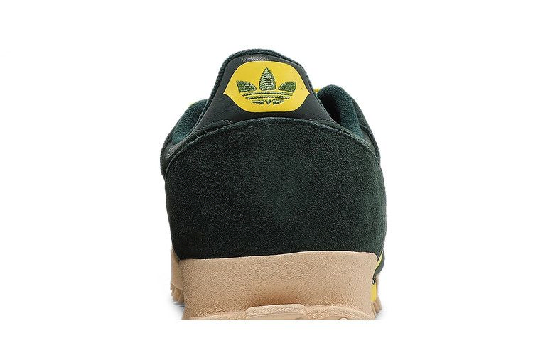 Модель Yara Shahidi x adidas Boston Super Marathon 'Forest Night Yellow', выпущенная в рамках большой коллекции с актрисой и активисткой, представляет собой гибридный силуэт, в котором сочетаются детали двух классических беговых моделей - Boston Super и Marathon. Темно-зеленый оттенок использован в верхней части, выполненной из текстиля с тональными замшевыми накладками и контрастными желтыми кожаными полосками. Резиновая подошва имеет сцепление с поверхностью в виде трилистников adidas.