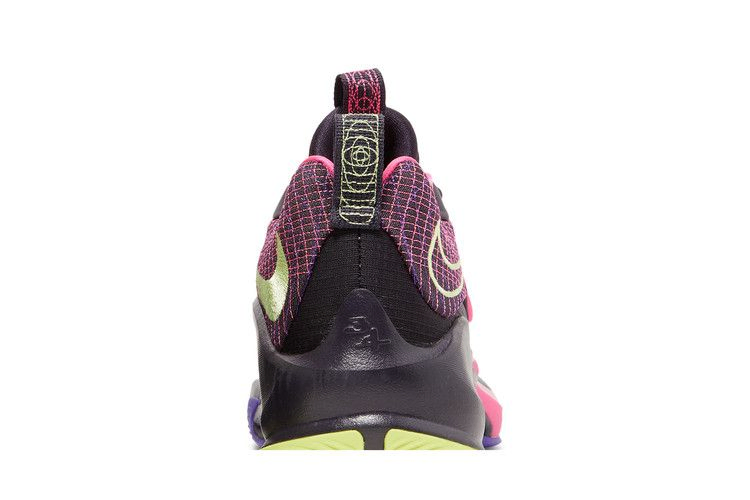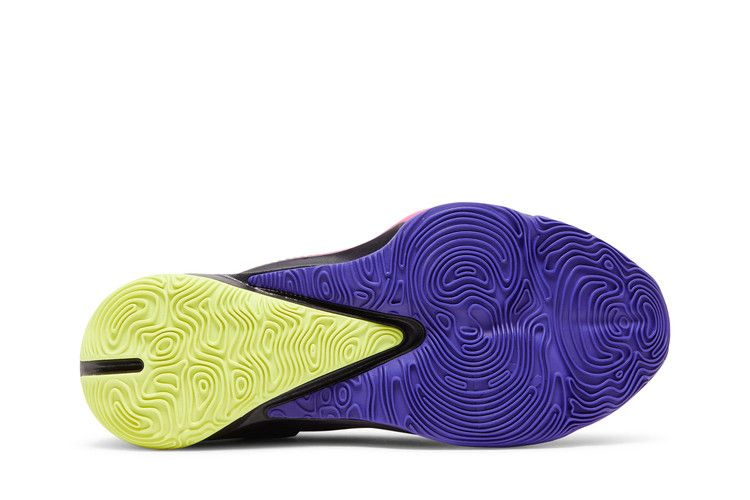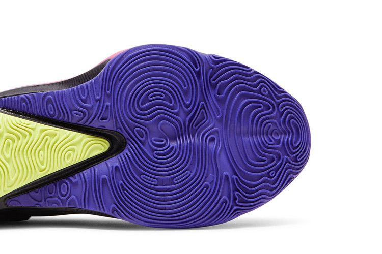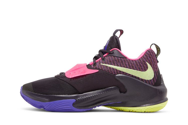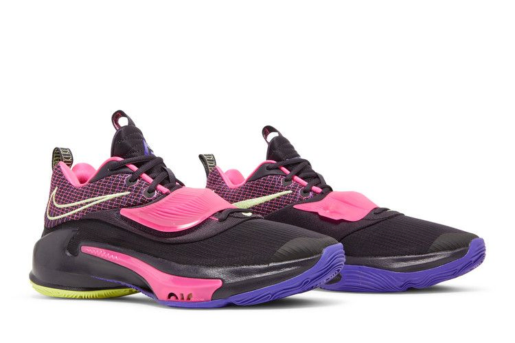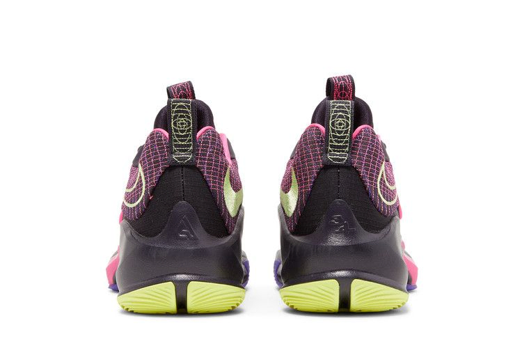 Nike Zoom Freak 3 'Digital' опираются на двухцветную резиновую подошву с компьютерным рисунком сцепления. Высокотехнологичный стиль лежит в основе дизайна этой пары. Верх из черного текстиля, регулируемый ремешок цвета фуксии и обратный брендинг Swoosh в цвете Light Lemon Twist. Личный логотип Джанниса Антокунмпо украшает правый язычок, а надпись "Input Data" - противоположный язычок. Скульптурная межподошва из пеноматериала оснащена двумя блоками Zoom Air в передней части стопы и формованным крылом из TPU в боковой части, что улучшает стабильность и поддержку.