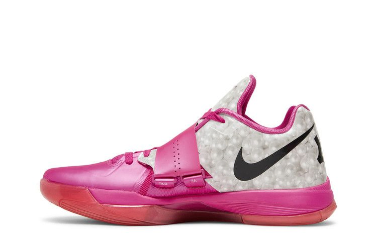 Кевин Дюрант почтил память своей покойной тети, выпустив Zoom KD 4 "Aunt Pearl". Его тетя, которая умерла от рака, когда Дюранту было 11 лет, изображена в виде жемчужины на пятке и медиальной стороне кроссовка. Остальной дизайн отражает связь кроссовок с Think Pink, кампанией, направленной на улучшение жизни больных раком груди и их семей. На нижней стороне ремешка в средней части стопы есть надпись, посвященная тете Перл.