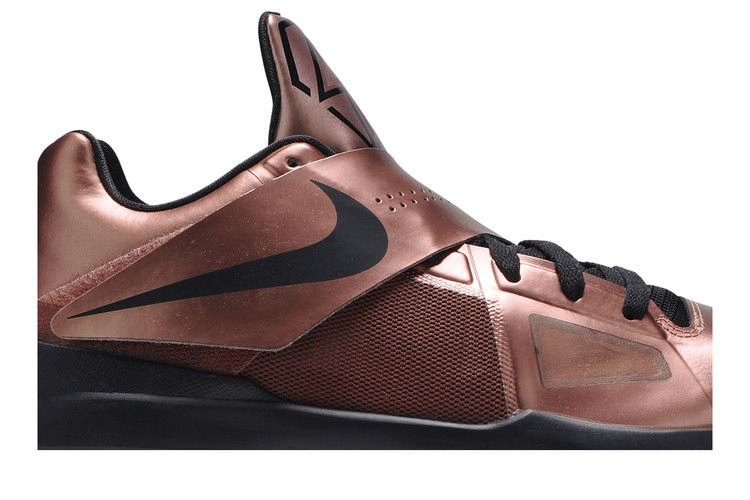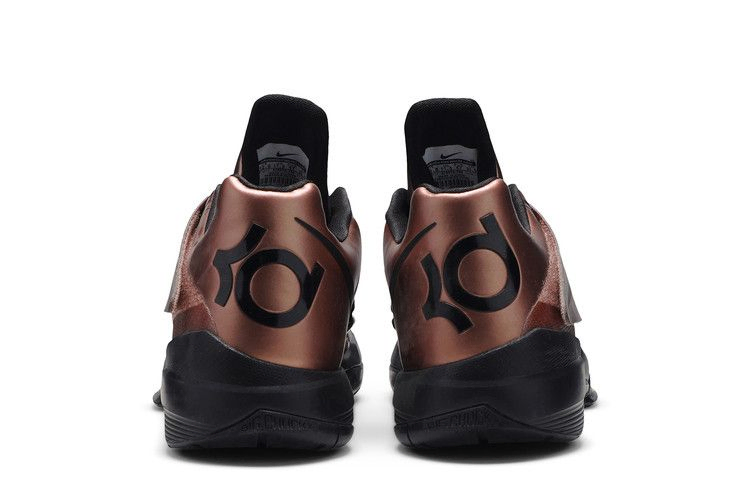 Четвертые фирменные кроссовки Кевина Дюранта оснащены системой адаптивной посадки Adaptive Fit System с трехслойной конструкцией Hyperfuse, ремешком на средней части стопы, промежуточной подошвой Phylon и амортизацией Zoom Air на передней части стопы. Эта рождественская модель KD 4 была обута Кевином Дюрантом на рождественский матч против Orlando Magic в 2011 году. Модель имеет верхнюю часть цвета бронзы с черными акцентами, перфорацию на ремешке, дополнительный комплект красных шнурков и брендинг рождественского печенья KD на стельке.