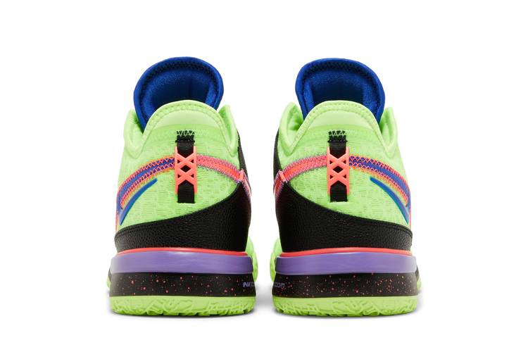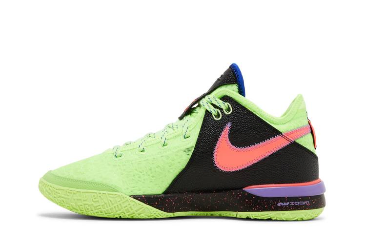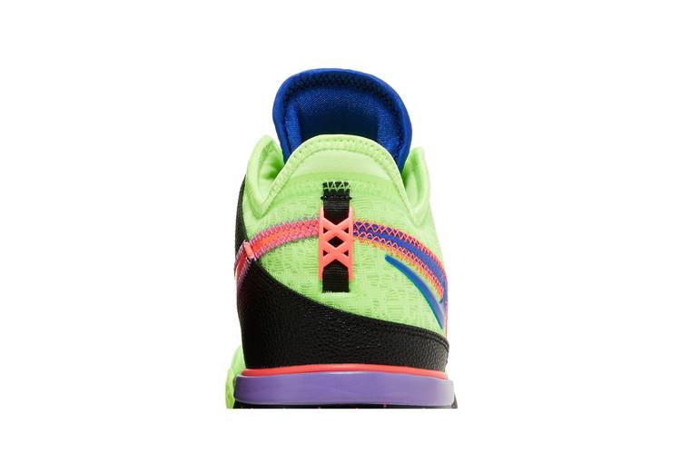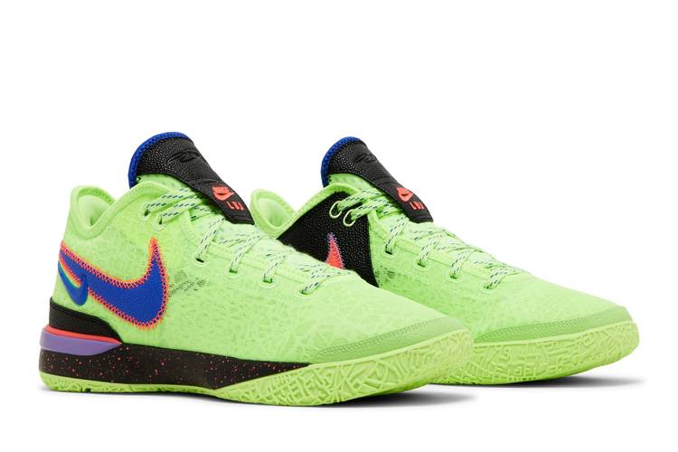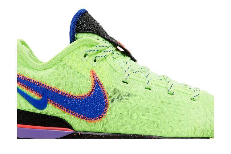 Nike Zoom LeBron NXXT Gen 'Glitch' - это яркая модель баскетбольных кроссовок. Верхняя часть выполнена из сетки цвета Ghost Green и оснащена мягким воротником Nike Sphere и стабилизирующей пяткой из TPU. Боковую сторону украшают сдвоенные логотипы Racer Blue, а противоположную сторону - розовый Swoosh и прочная синтетическая накладка с черной галькой. Низкие кроссовки сидят на пятнистой подошве Phylon с амортизацией Zoom Air в носочной и пяточной частях. Подошва неоново-зеленого цвета имеет разнонаправленный рисунок сцепления, созданный по образцу карты города Акрон, штат Огайо - родного города Леброна Джеймса.