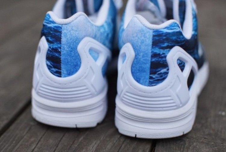 Модель 2014 года adidas ZX Flux 'Ocean' сочетает в себе принт океана на верхней части и язычке с белыми полосками, белыми шнурками и люверсами, а также белым каркасом пятки из TPU. Подошва беговых кроссовок ZX 8000 белого цвета оснащена системой Torsion от adidas, которая помогает передней и задней части стопы двигаться независимо друг от друга и адаптироваться к поверхности, не напрягая стопу.