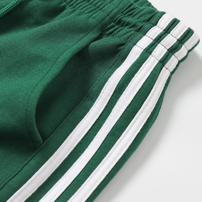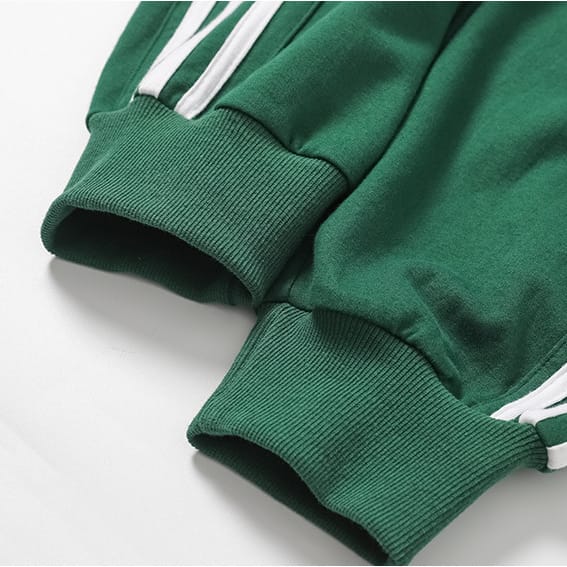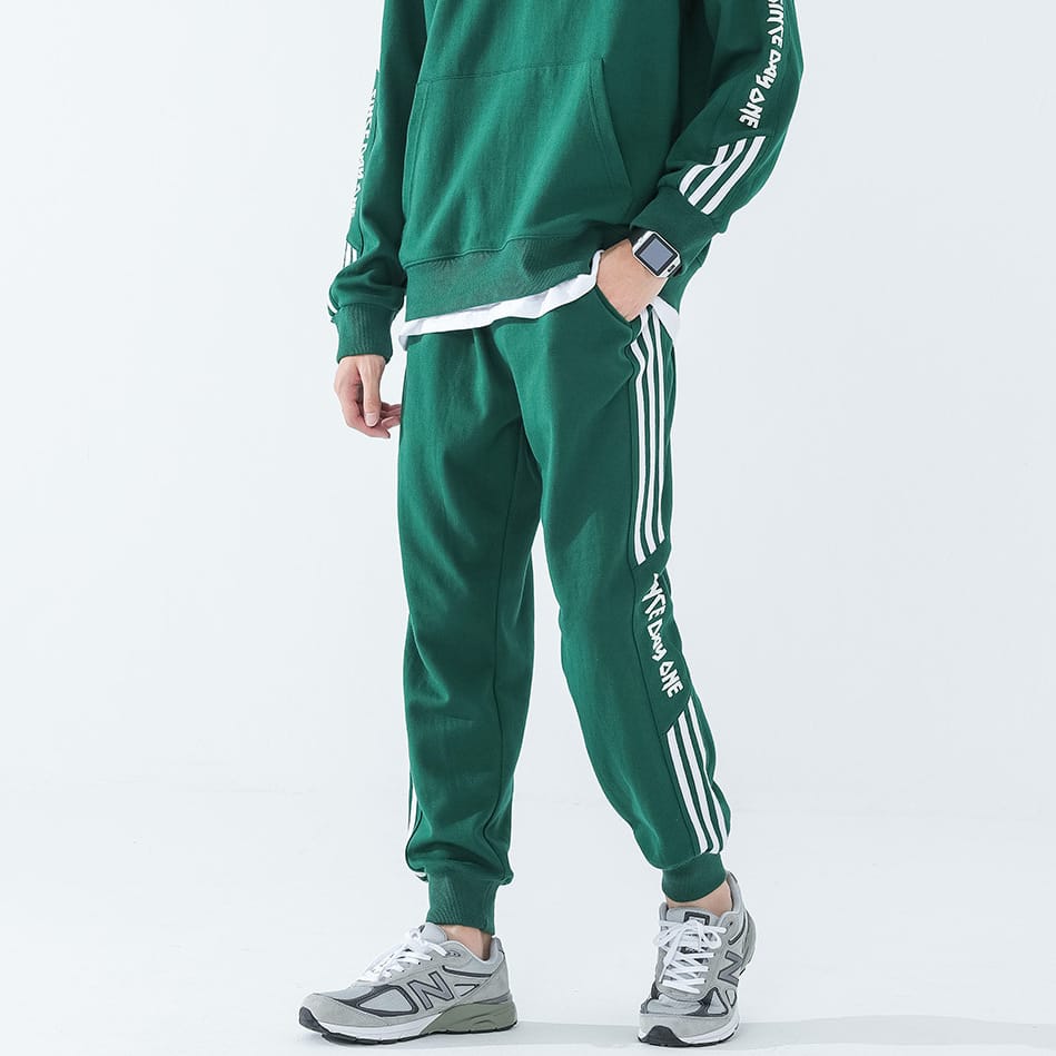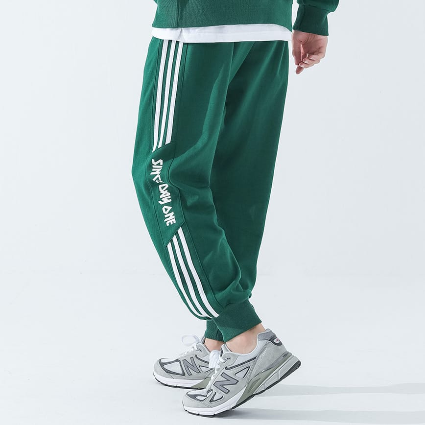 Спортивные штаны DPOY Since day one Green Pants из натурального хлопка отлично подходят для тренировок. Зеленые трикотажные брюки свободного кроя с карманами комфортно сидят благодаря эластичному поясу на шнурке и манжетам внизу. Спортивные штаны дополнены по бокам тремя узкими белыми полосами и надписью.