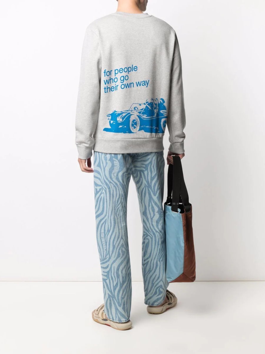 Свитшот A.P.C. Michele Sweatshirt Gray создан из высококачественного френч терри в сером цвете. Круглый вырез, манжеты и подол ребристые. На груди свитшот украшен логотипом брендов голубого цвета. Также на спине изображен принт со слоганом, для непревзойденного стиля. Успейте купить пока есть в наличии!