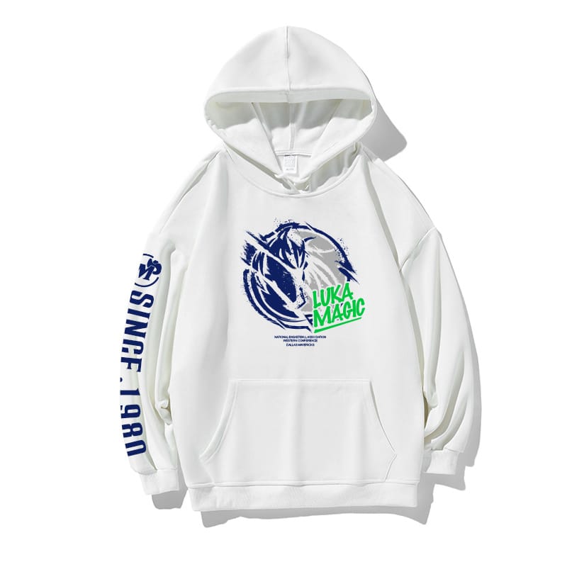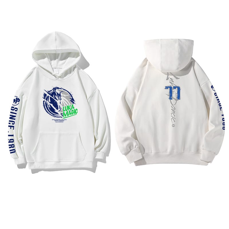 Толстовка DPOY inked Dallas Mavericks Doncic Hoodie выполнена из плотного трикотажа. Однотонное худи с карманом впереди украшено контрастным изображением символики команды Dallas Mavericks на груди, а также номером 77 и именем игрока Luka Doncic на спине.