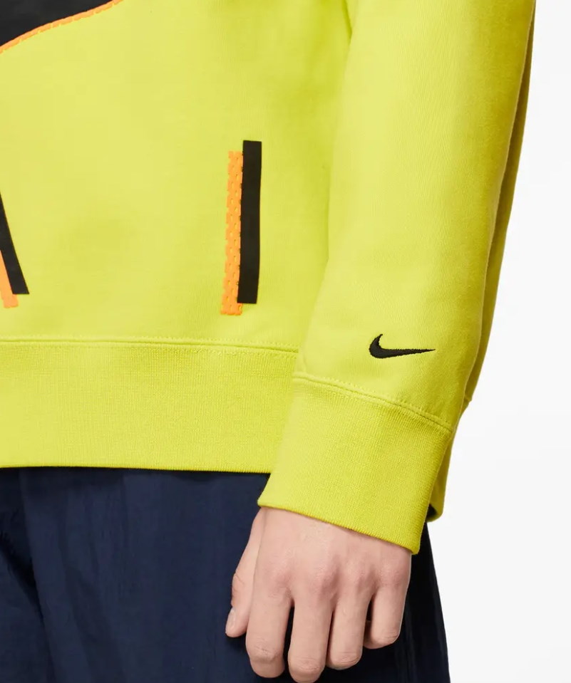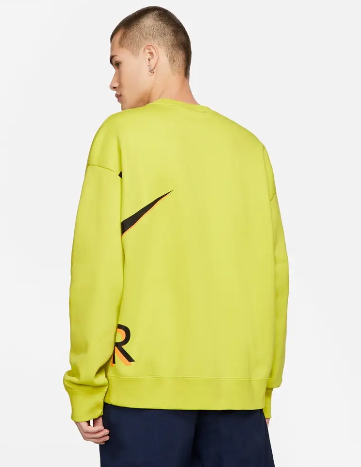 Толстовка Nike x Kim Jones Fleece Crewneck Volt сделана из дышащего хлопкового материала, имеет неоново-желтую расцветку. Дух классической модели Air Max 95 оживает в этой неоново желтой толстовке унисекс, ставшей результатом сотрудничества Nike и Кима Джонса. Он известный художественный руководитель Dior Men и Fendi Women. Толстовка выполнена в свободном силуэте с открытыми плечами, который обеспечивает отличную свободу движений. Она украшена крупной символикой Nike Air, отдающая дань уважения культовому внешнему виду AM95.
