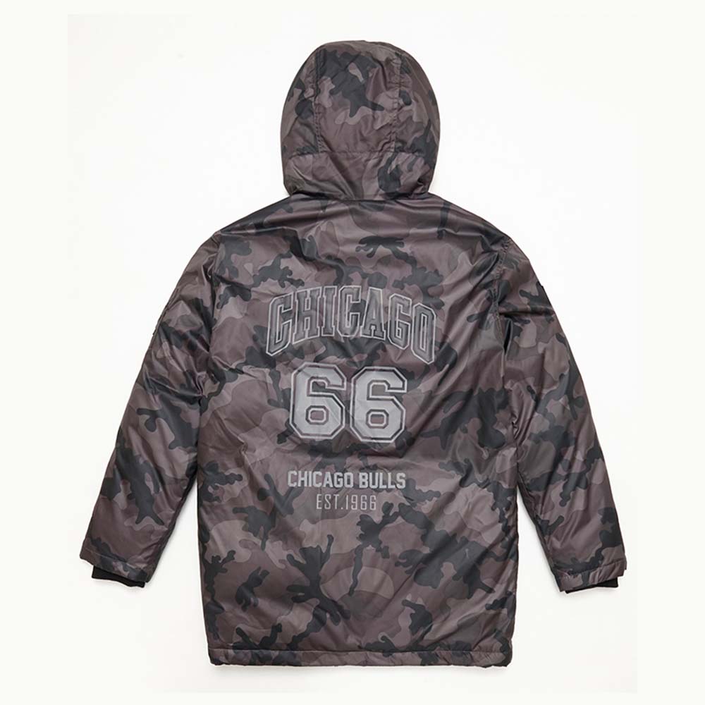 Пуховик 2020 Chicago Bulls Down Jacket Mens выполнен из высококачественных материалов в черном и камуфляжном цветах. В качестве наполнителя используется натуральный утиный пух. Спереди расположены нашивки: логотип команды Chicago Bulls, надписи «NBA. 1946» и «LXV est. 1966». Сзади надпись с наименованием команды.- Цвет: черный, камуфляжный