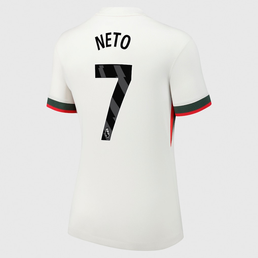 Поддержите «Челси» в матчах на выезде стильно и комфортно — в официальной женской выездной джерси сезона 2025/26 с нанесением Neto 7. Эта модель сочетает актуальный дизайн клуба с технологичными материалами от Nike и адаптированной посадкой для максимального удобства.- Официальная женская реплика выездной формы Chelsea FC 2025/26
