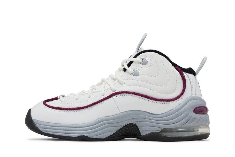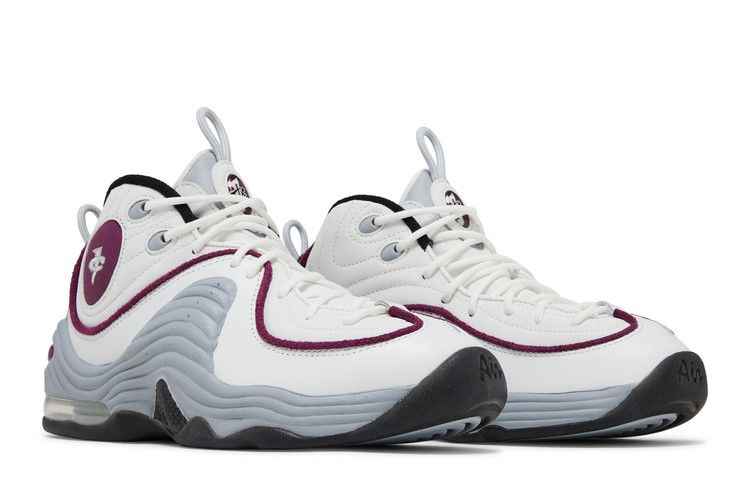 Женские кроссовки Nike Air Penny 2 "Rosewood" возвращают вторую фирменную модель Пенни Хардауэя в новых цветах, сохраняя при этом детали дизайна, напоминающие о хардвуде 90-х. Верхняя часть кроссовок выполнена из белой кожи Summit White с бордовой отделкой и фирменным логотипом Пенни 1 Cent на пятке и боковом воротнике. Волнистые линии выделяют промежуточную подошву Phylon, выполненную в волчьем сером цвете и оснащенную блоком Zoom Air в передней части стопы и открытым блоком Max Air в пятке.
