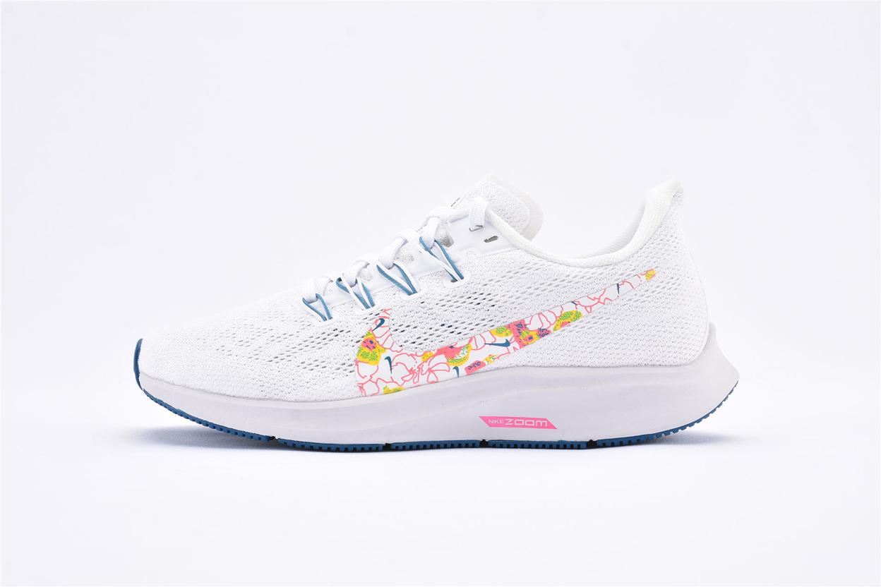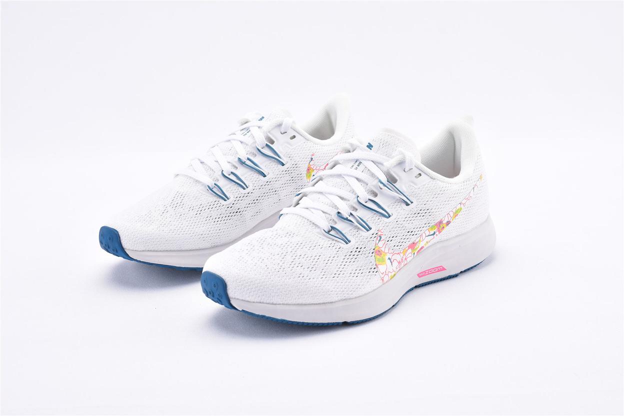 Женская модель для бега Nike Wmns Air Zoom Pegasus 36 FLR Hyper Pink выполнена в белом сетчатом верхе. Кроссовки также имеют логотип с цветочным принтом и синие петли шнуровки. Дизайн завершается белоснежной подошвой с розовым логотипом Nike Zoom и черным протектором для лучшего сцепления.- Цвета: White/Hyper Pink-Vast Grey