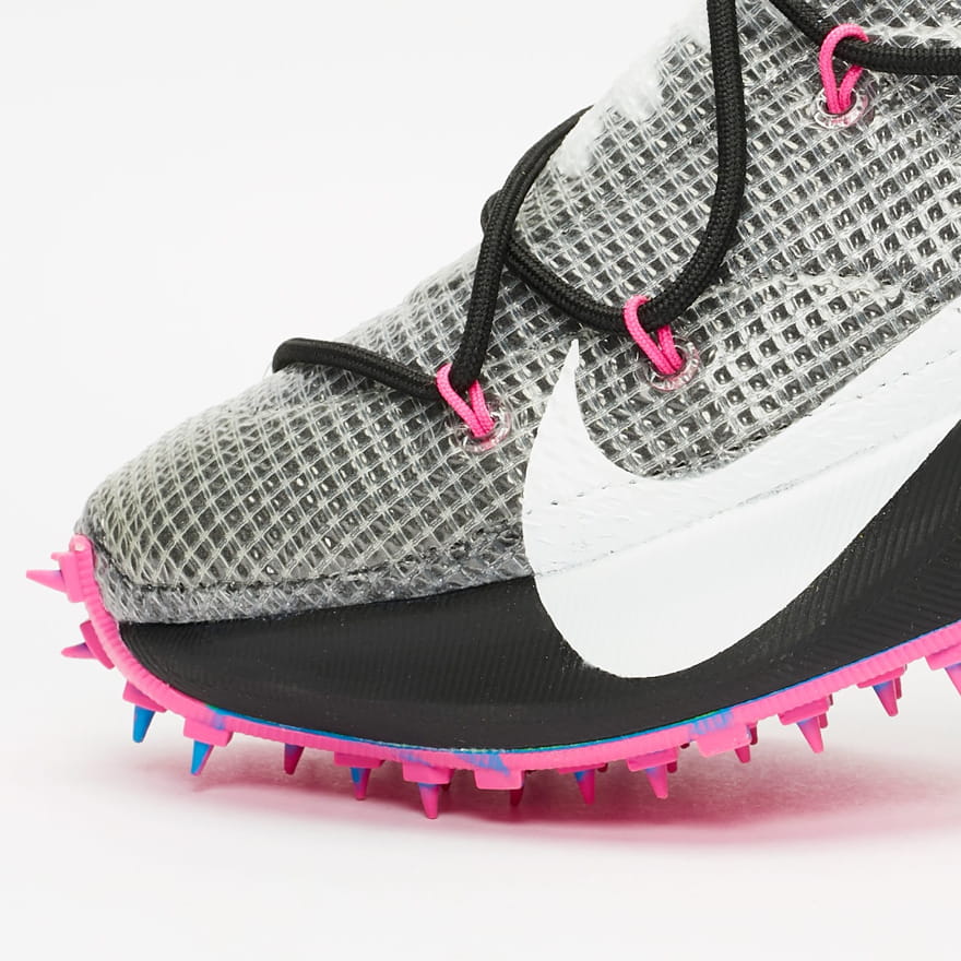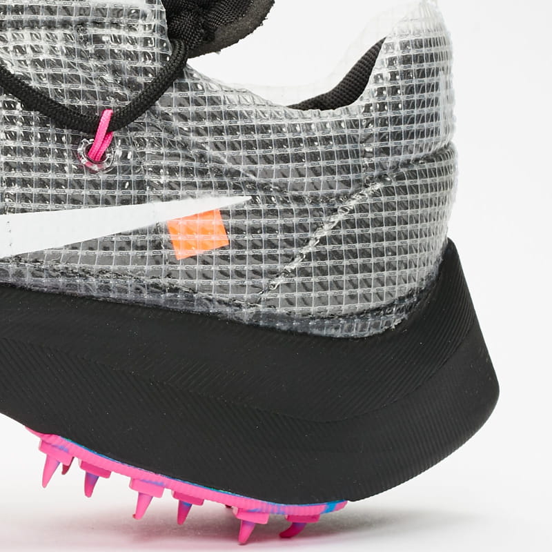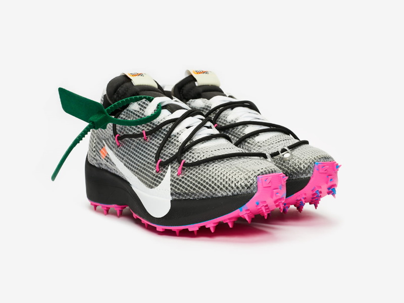 Модель Off-White x Nike Wmns Vapor Street, запущенная в ноябре 2019 года, Вирджилом Абло является отсылкой к беговой модели 70-х годов. Эта женская версия является предметом утилитарного подхода дизайнера к текстилю, окутанному прозрачной пленкой с фирменным логотипом Swoosh. Уникальная неоновая шнуровка, текст на средней части пятки и язычок с необработанными краями усиливают впечатление. Подошва Laser Fuchsia с шипами завершает конструкцию.- Цвета: Black/White/Black/Laser Fuchsia