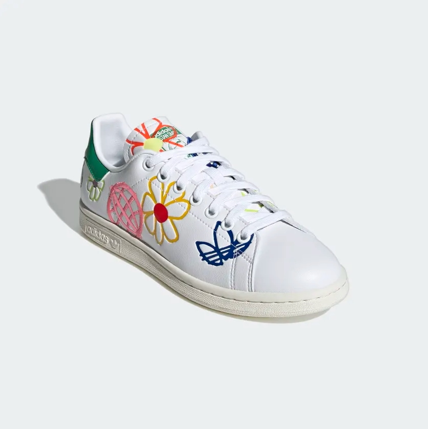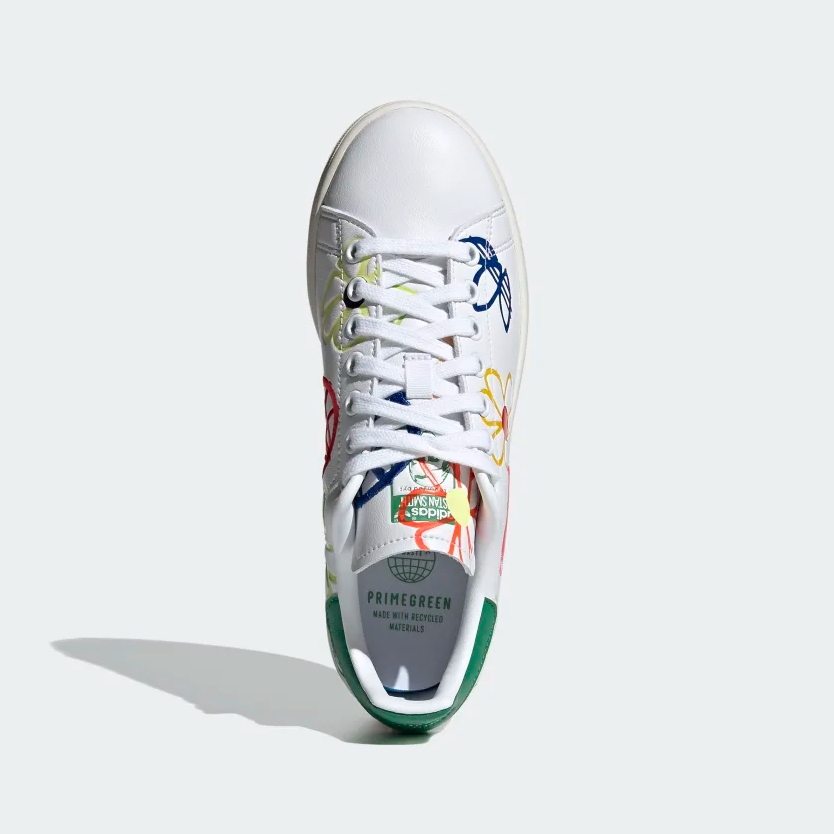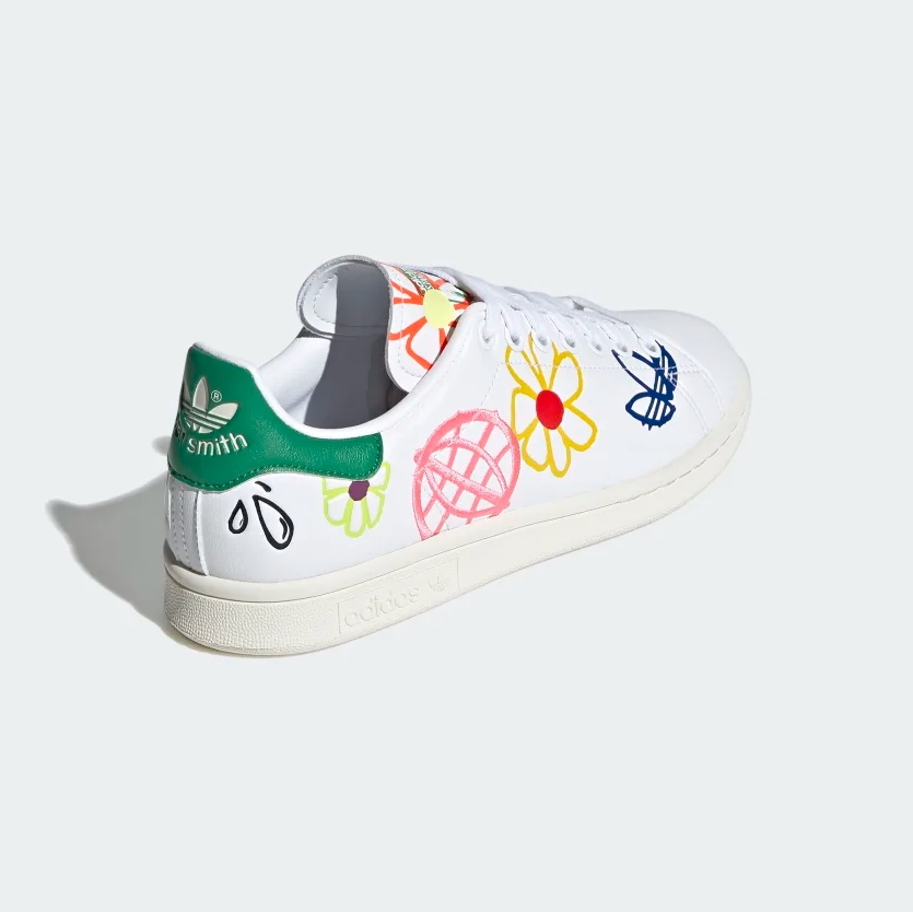 Женские кроссовки Stan Smith 'Large Doodles' от adidas имитируют дизайн, сделанный своими руками. Яркие произведения искусства выделяются на верхней части из белой синтетической кожи, частично сделанной из переработанных материалов и подчеркнутой тремя перфорированными полосами. Контрастный зеленый язычок на пятке сочетается со стандартной биркой на язычке Stan Smith. Низкий верх на прочной резиновой подошве создает винтажную эстетику.- Цвета: Cloud White/Green/Chalk White