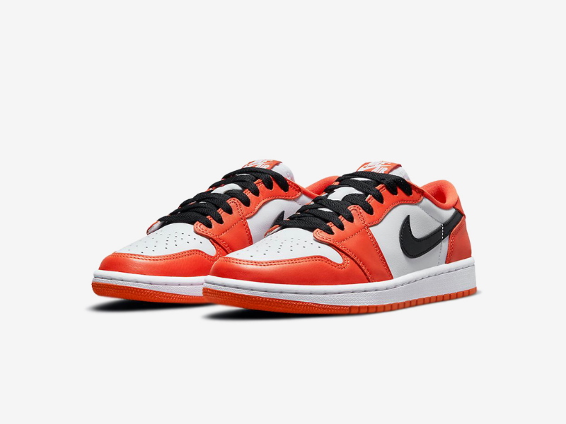 В женской модели Air Jordan 1 Low OG Starfish, вдохновленной серией Shattered Backboard от знаменитого бренда, используется белый кожаный верх с контрастными оранжевыми накладками и черный логотип Swoosh. Тканая бирка Nike Air украшает дышащий нейлоновый язычок. Легкая амортизация обеспечивается герметичной мидсолью Air.- Цвета: Starfish/White/Black