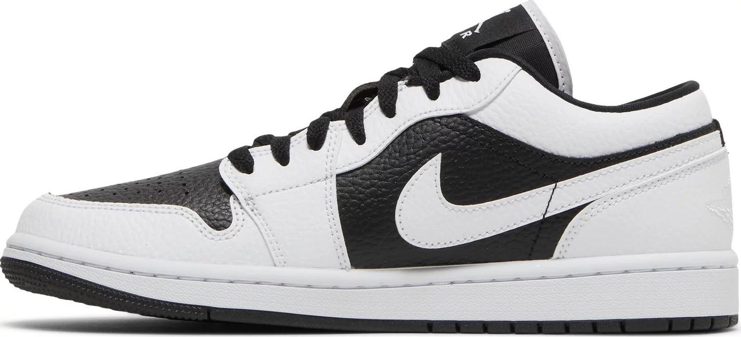Женские кроссовки Air Jordan 1 Low SE 'Homage' демонстрируют раздельные цветовые схемы, напоминающие о модели Air Jordan 1 High "Homage to Home" 2018 года. Верхняя часть из кожи имеет белую основу с контрастными черными накладками на латеральной стороне и черную основу с белыми накладками на медиальной стороне. Тема разделения распространяется на язычок Jumpman и логотип Wings, вышитый на пятке. Кроссовки установлены на резиновую подошву, подчеркнутую белыми боковинами и черной резиновой подметкой.