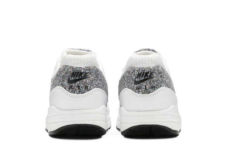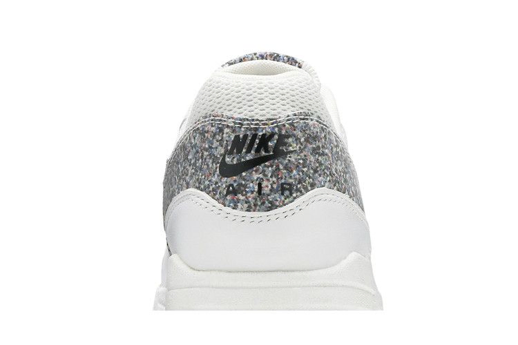 Nike обновляет ретро-дизайн Air Max 1, создавая женскую цветовую палитру с белой кожей и сетчатыми панелями на верхней части. Гранитный узор контрастирует с панелью четверти, а золотистый металлик появляется у основания задника. Для улучшения воздухообмена в кроссовках используется классическая амортизация Air в пятке.