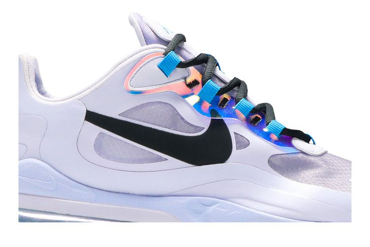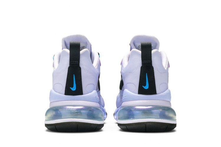 Кроссовки Nike Wmns Air Max 270 React, разработанные Диланом Раашем, продолжают стремление бренда к совершенствованию традиционной технологии. Эта женская версия, выпущенная в ноябре 2019 года, создана на языке лучистого дизайна с волнистыми панелями Amethyst Tint, вплетенными в верхнюю часть из рипстопа. Петли для шнурков и вышитые логотипы имеют ярко-синий оттенок. На резиновой подошве тональная межподошва React с пузырьком Max Air в пятке.