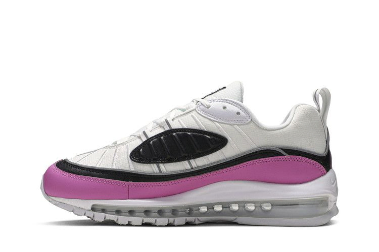 Женские Air Max 98 выйдут только в июле 2019 года. Низкая модель Special Edition имеет прочный верх из рипстоп-канваса белого цвета с накладками из черной и розовой кожи по периметру кроссовка. Черная накладка овальной формы на медиальной стороне придает современный вид. Кроссовки оснащены полноразмерным блоком Air Max, который первоначально использовался в модели AM97, и резиновой подошвой для максимального сцепления.