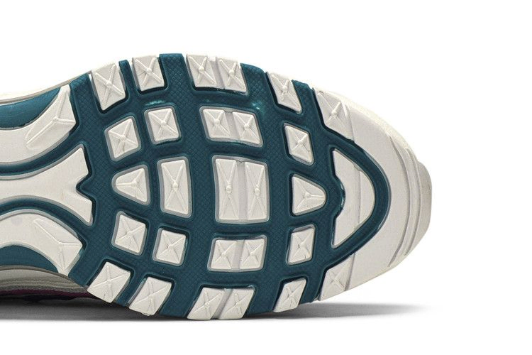 Женские Air Max 98 "Teal Purple" подчеркивают смелые линии силуэта яркими акцентами. Верхняя часть выполнена из сетки тилового цвета с контрастными розовыми и фиолетовыми вкраплениями. Белые кожаные накладки дополнены белой промежуточной подошвой, на которой размещен знакомый полноразмерный блок Max Air, перешедший от Air Max 97. Светоотражающие розовые вставки в верхней части обеспечивают дополнительную видимость в условиях недостаточной освещенности.