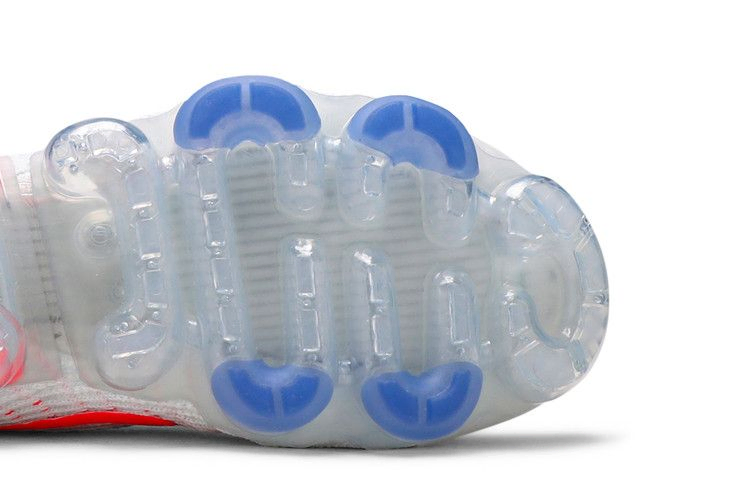 Женские кроссовки Nike Air VaporMax Flyknit 3 "USA" отличаются высокой чувствительностью от пятки к носку благодаря инновационному блоку VaporMax, который позволяет стопе использовать все преимущества амортизации Nike Air. Сверху белая конструкция Flyknit поддерживается видимыми кабелями Flywire малинового цвета. Такой же яркий оттенок имеет формованная накладка на пятку, контрастирующая с тесьмой и полупрозрачной клипсой из TPU цвета Astronomy Blue.