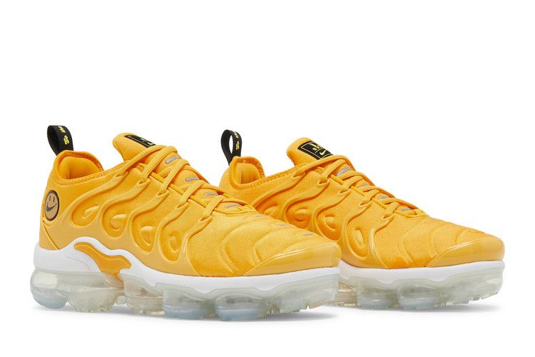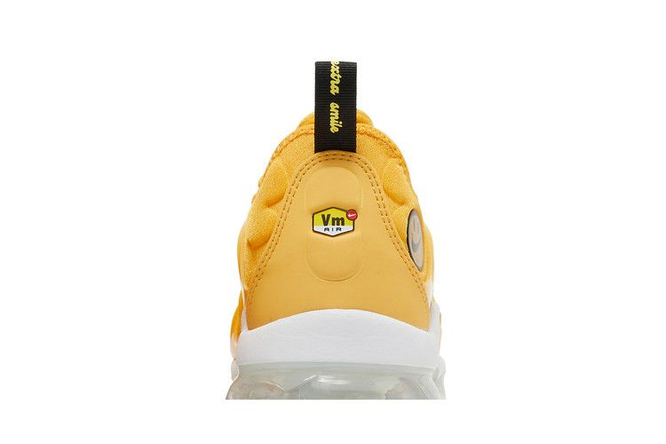 Женские кроссовки Nike Air VaporMax Plus "Go the Extra Smile" привносят игривые детали в гибридный силуэт, сочетающий ретро-стиль с современной амортизацией. Фирменный желтый оттенок Nike нанесен на верхнюю часть, вдохновленную Air Max Plus, с волнистой накладкой из TPU и светоотражающими деталями на язычке и носочной части. Эмблема со смайликом Nike украшает боковую пятку, а на носочной стельке изображена графика "Go the Extra Smile". В основе кроссовок лежит плавучая подошва VaporMax, поддерживаемая прочными накладками в местах повышенного износа.