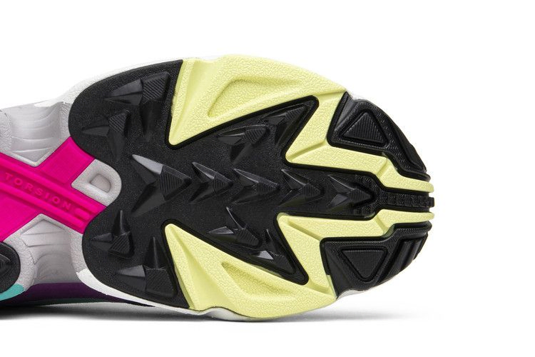 Вдохновленная модными тенденциями 90-х, модель adidas Falcon представлена в ярких тонах: темно-синем, тиловом и розовом. В дополнение к ярким оттенкам на белой промежуточной подошве в знак уважения к 90-м, кроссовки также оснащены классической системой Torsion Bar для поддержки.