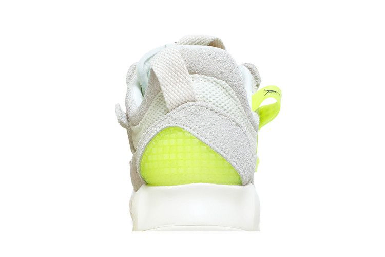 Женские кроссовки Jordan MA2 "Pale Ivory Volt" привносят неоновый цвет в нейтральный дизайн. Верхняя часть из дышащей сетки с мохнатыми замшевыми накладками выполнена в цвете слоновой кости. Неоново-зеленые акценты расставлены на полупрозрачной петле, прикрепленной к боковому воротнику, и текстурированной резиновой панели на пятке, предназначенной для того, чтобы позволить владельцу соскальзывать с обуви, используя противоположную ногу. Кроссовки опираются на упругую подошву из пеноматериала с неоновым блоком Max Air под пяткой.