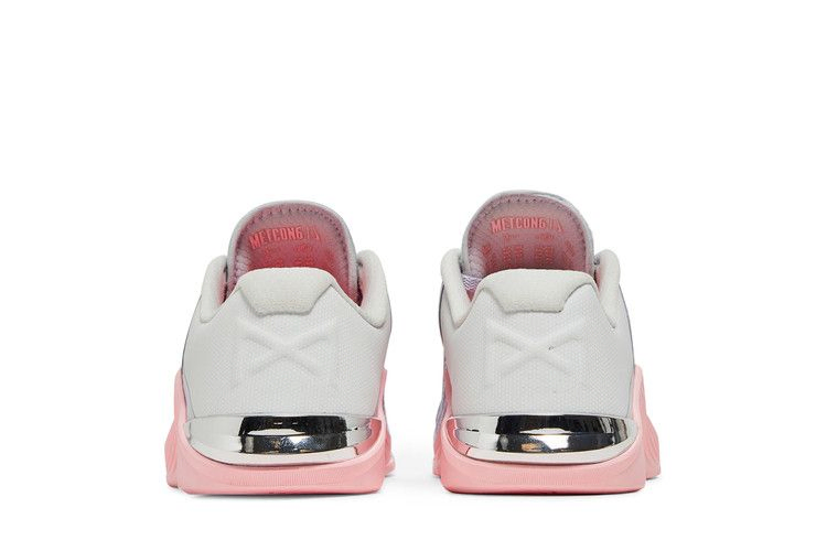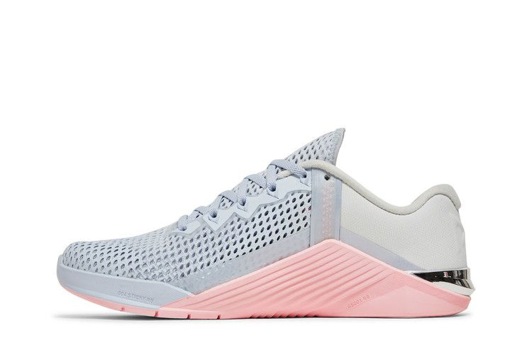 Женские кроссовки Nike Metcon 6 "Football Grey Arctic Punch" используют нежно-розовый оттенок для демонстрации стойкости. Пастельный оттенок нанесен на резиновую подошву кроссовок с широкой устойчивой платформой и расширенным покрытием, которое обвивает боковины кроссовка, что является фирменным атрибутом линейки Metcon. Верхняя часть кроссовок выполнена из легкой сетки, усиленной прочным трафаретным принтом и обеспечивающей на 18 % большую воздухопроницаемость по сравнению с Metcon 5.