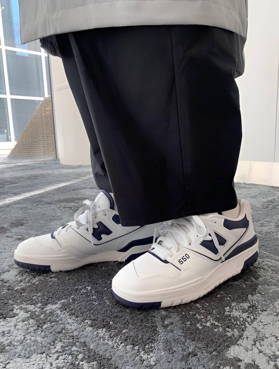 Модель Wmns New Balance 550 Dark Mercury сочетает в себе неброские линии обуви с изысканной, нейтральной цветовой гаммой. Ретро-силуэт использует белый кожаный верх со синими акцентами. Они расположены на фирменном логотипе "N", стойке пятки из TPU и кожаной накладке, которая укрепляет мягкий сетчатый воротник. Брендинг New Balance 550 расположен на тканом язычке, а логотип Flying NB украшает заднюю часть пятки. Отражая баскетбольные корни модели 80-х годов, подошва из прочной резины поддерживает низ, а на медиальной стороне имеется открытый клин из пены.