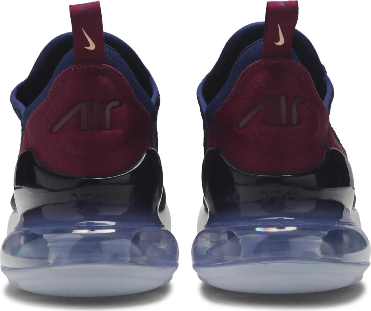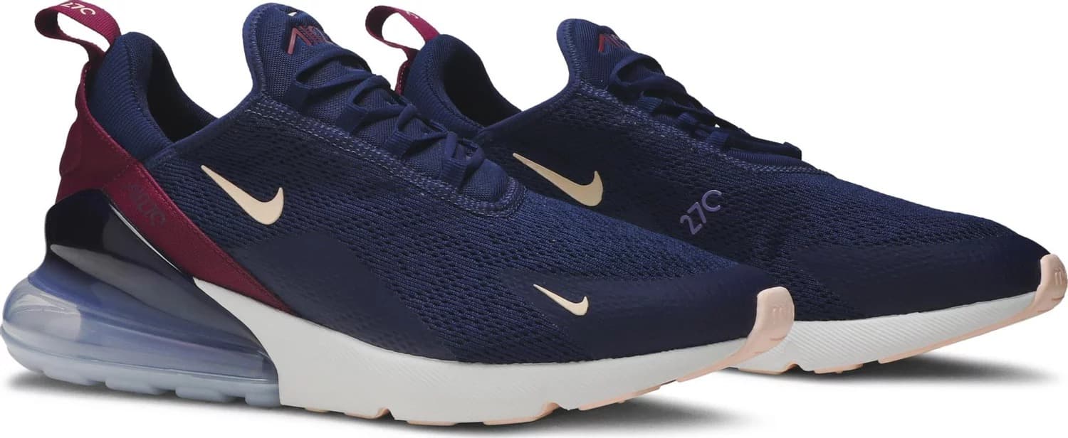 Женские кроссовки Air Max 270 "Blue Void" выполнены в сетчатом верхе простого темно-синего оттенка, подчеркнутого тонкими вкраплениями кораллового цвета на подошве. Насыщенный фиолетовый оттенок на пятке дополняется градиентной темно-синей отделкой объемной подошвы Air на пятке, обеспечивающей такую отзывчивую амортизацию, на которую только намекали предшественники Air Max 180 и 93.- Цвета: Blue Void
