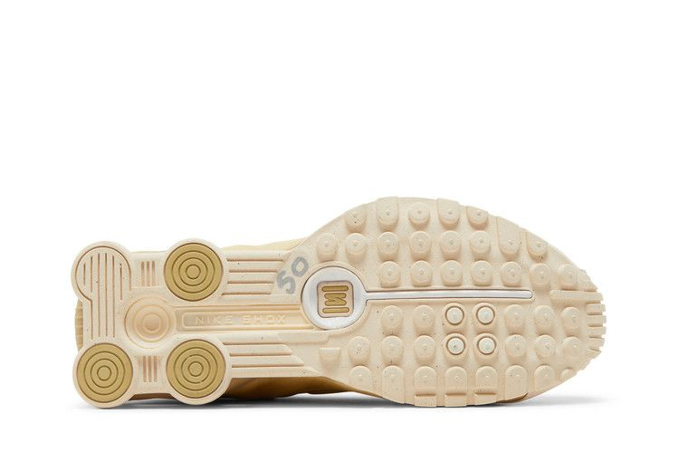 Wmns Shox R4 'Guava Gold' - роскошная версия классических кроссовок 2000 года, выпущенная в мае 2019 года в заветном мотиве. Оригинальная модель Shox R4, ставшая центральным элементом рекламной кампании Nike "Boing, Boing", была создана Брюсом Килгором и Серхио Лозано, чтобы дать спортсменам ощущение весны под ногами. Характерная волнистая средняя линия и рельефные панели, напоминающие о дизайне Air Max Лозано, остались нетронутыми и в этой версии, как и кожаный воротник, накладки на глаза и носок, покрытый перфорацией.
