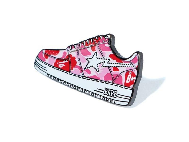 Значок BAPE ABC Camo Bapesta Pintrill Pin Pink выполнен из высококачественного материала в розовом цвете. Появились значки BAPESTA в форме кроссовок, с фирменным розовым камуфляжем! Он выполнен в дизайне, который чувствует вкус бренда и притягивает взгляд в качестве акцента.