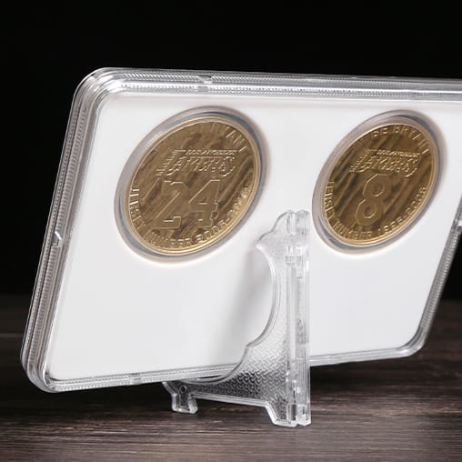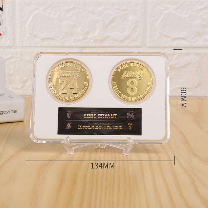 Памятные монеты Jinduo Lakers Kobe Memorial Coin Set созданы из меди с золотым покрытием в память о карьере игрока Lakers Kobe Bryant. На монетах кроме его имени также выгравированы номера 24 и 8 с датами, в которые он играл под этими номерами. Набор из двух монет в прочном прозрачном кейсе с подписью станет желанным подарком для фаната.
