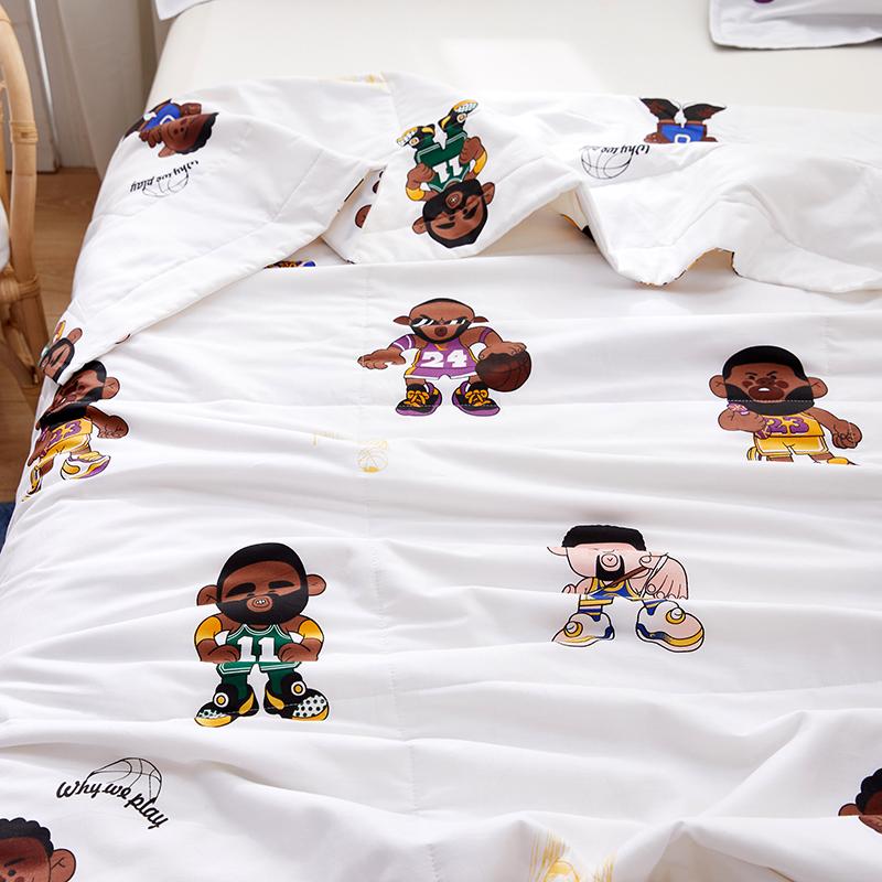 Легкое одеяло NBA Players White имеет белую расцветку и повторяющийся принт с мультипликационными персонажами звезд NBA - Коби, Джеймсом и Кайри Ирвингом. Одеяло выполнено из качественного стеганного 100% хлопка, что позволяет использовать для его чистки обычную машинную стирку. Одеяло быстро сохнет, приятное на ощупь и поставляется в двух доступных размерах.- Материал: хлопок 100%
