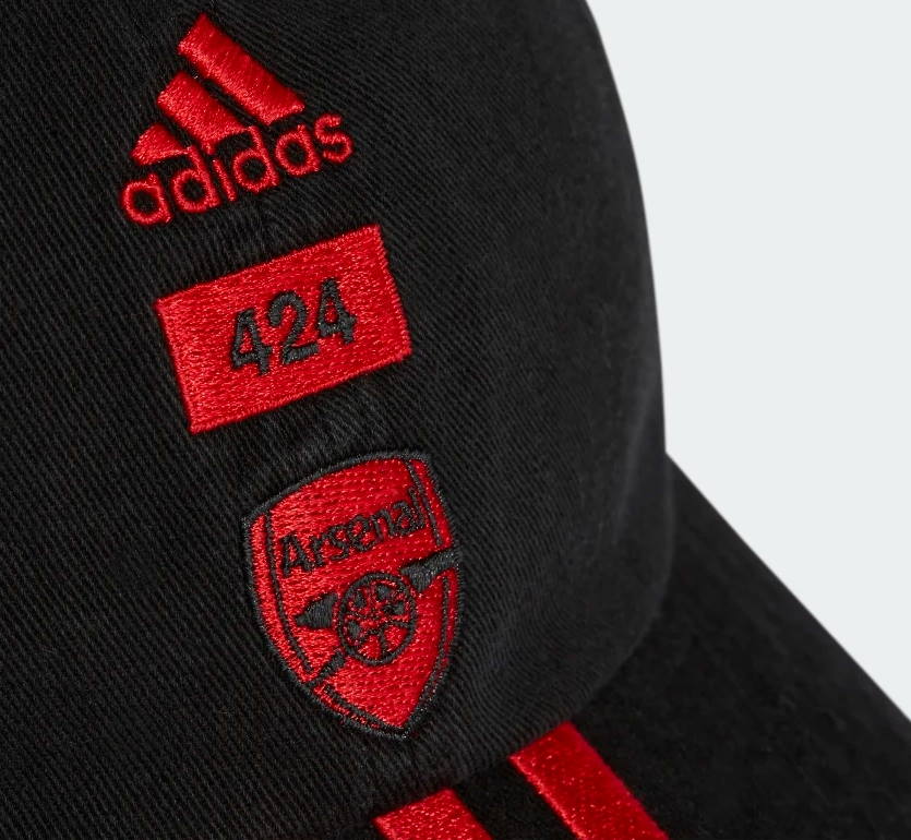 Кепка adidas x Arsenal x 424 Dad Cap Black сделана из лёгкого и дышащего хлопкового материала, имеет черную расцветку. Arsenal и adidas представляют ограниченную коллекцию в сотрудничестве с брендом уличной одежды из Лос-Анджелеса 424, которая появилась 16 марта 2021 на Arsenal Direct. Эта специальная коллекция, созданная основателем 424 Гильермо Андраде, стирает границы между модой и спортом и сочетает в себе уличную одежду Лос-Анджелеса и производительность adidas.