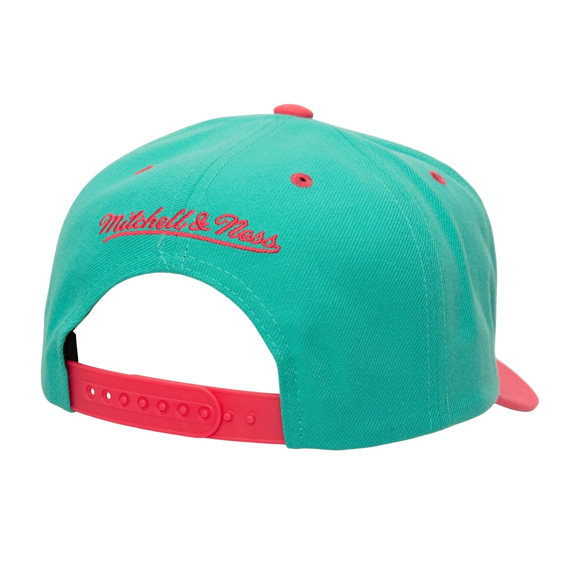 Бирюзовая бейсболка Mitchell & Ness All In 2.0 Pro Snapback HWC San Antonio Spurs в ретро-стиле имеет застежку-защелку сзади для регулировки, вышитый логотип команды Сан-Антонио Сперс, бренда Mitchell & Ness сзади и загнутый розовый козырек для максимального стиля. Бейсболка выполнена из полиэстера с зеленой нижней частью козырька.