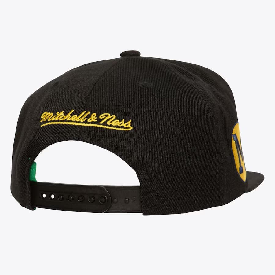Черная бейсболка с желтыми акцентами Mitchell & Ness Black Michigan Wolverines Vault Collection Triple Play Snapback Hat в ретро-стиле имеет застежку-защелку сзади для регулировки, вышитый логотип команды Вулверинс, бренда Mitchell & Ness сзади и прямой козырек для максимального стиля. Бейсболка выполнена из полиэстера.- Цвет: Черный