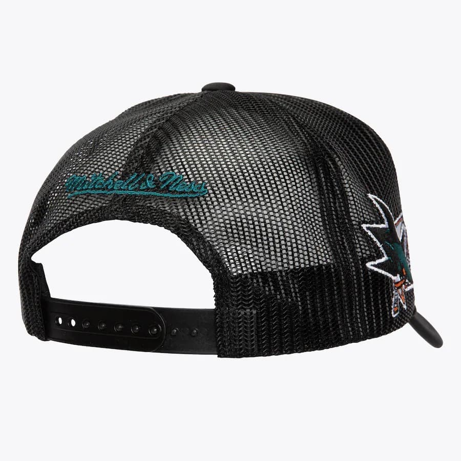 - Бейсболка Mitchell & Ness Black San Jose Sharks Script Trucker Adjustable Hat