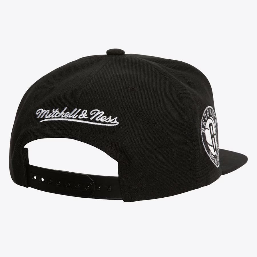Заказать бейсболку Mitchell & Ness Black White Brooklyn Nets Evergreen OG Snapback Hat с бесплатной доставкой.