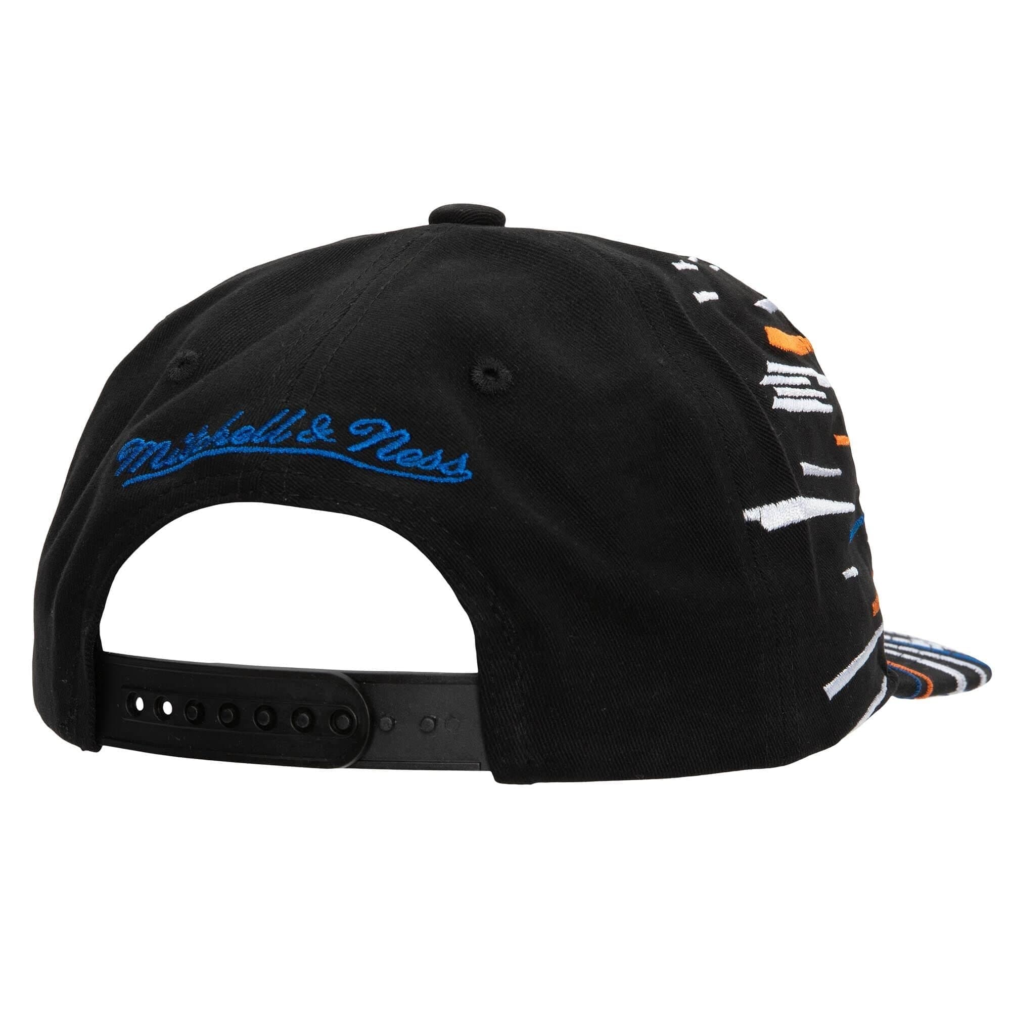 Черная бейсболка с яркими акцентами Mitchell & Ness Burst Deadstock Snapback New York Knicks в ретро-стиле имеет застежку-защелку сзади для регулировки, вышитый логотип команды Никс, бренда Mitchell & Ness сзади и прямой козырек для максимального стиля. Бейсболка выполнена из хлопка с синей нижней частью козырька.- Цвет: Черный