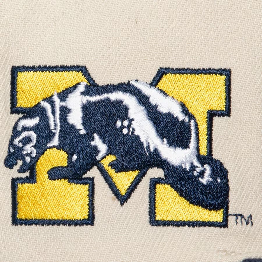 Заказать бейсболку Mitchell & Ness Cream Navy Michigan Wolverines Just Don Team Vault Snapback Hat с бесплатной доставкой.
