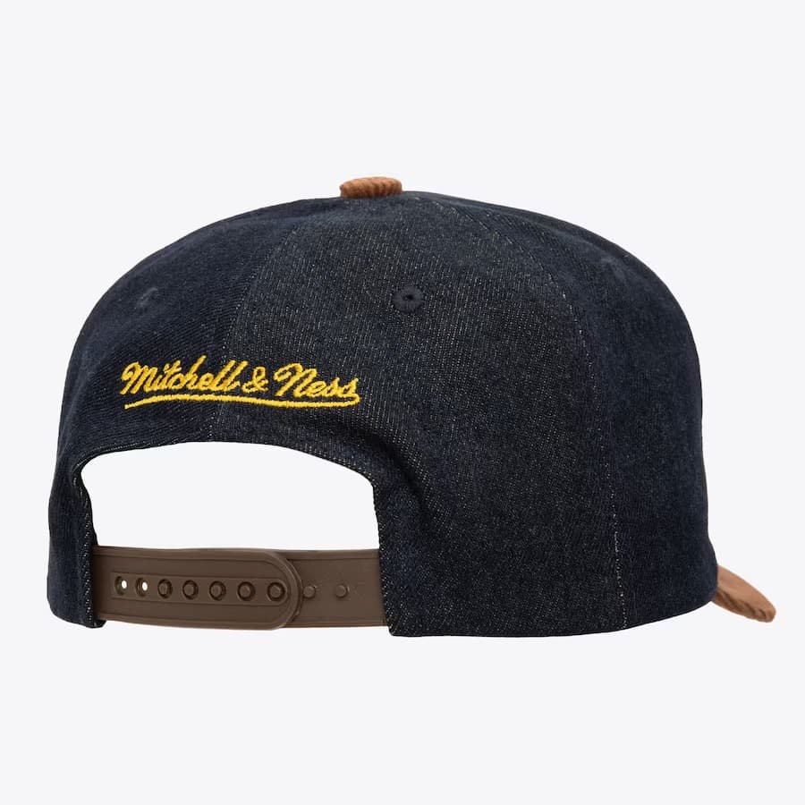 Темно-синяя бейсболка с желтыми акцентами Mitchell & Ness Denim Brown Los Angeles Lakers Corduroy D-Stressed Pro Snapback Hat в ретро-стиле имеет застежку-защелку сзади для регулировки, вышитый логотип команды Лэйкерс, бренда Mitchell & Ness сзади и загнутый козырек для максимального стиля. Бейсболка выполнена из уникального сочетания кордуры и денима.- Цвет: Темно-синий